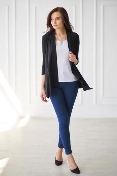 Фото товара 15380, черный кардиган без пуговиц