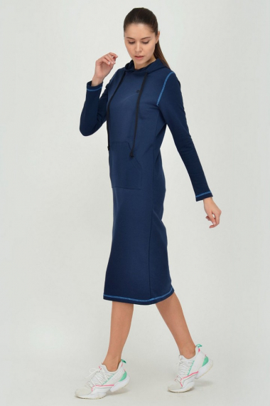 Фото товара 19882, темно-синее трикотажное платье с капюшоном